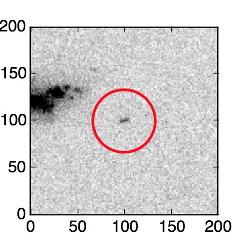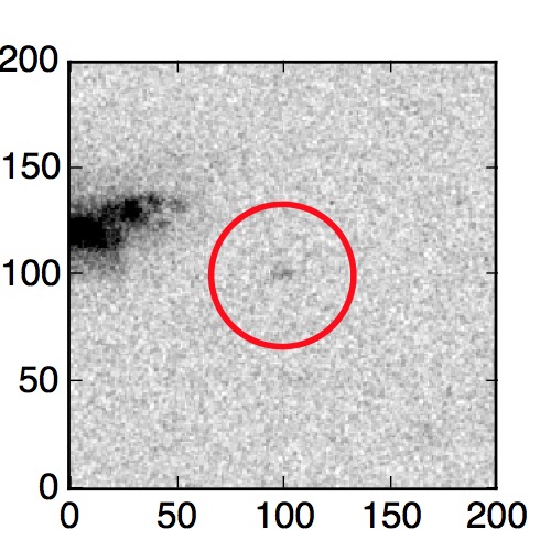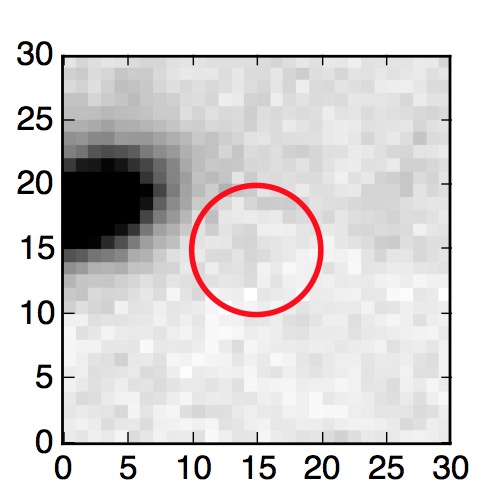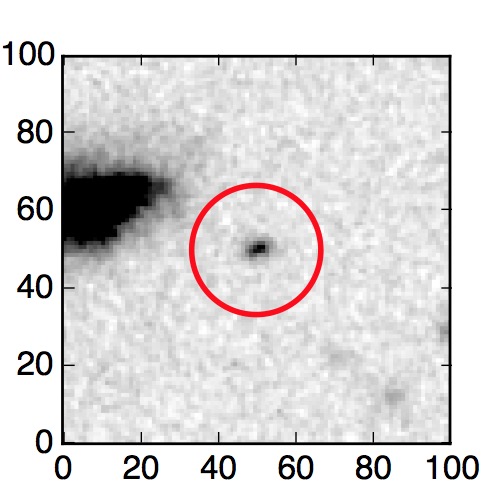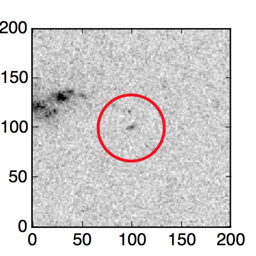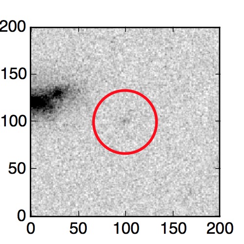 The red circle in the various panels is 1" in radius. The images are 6"x6".