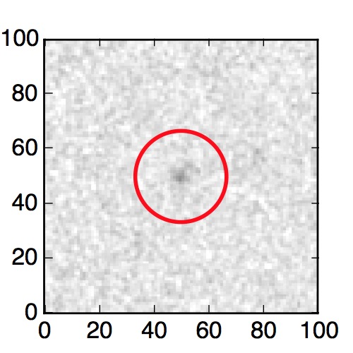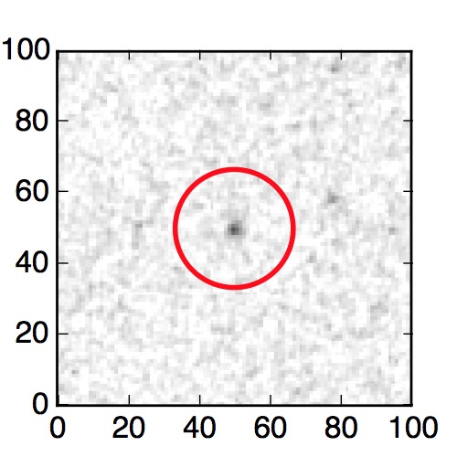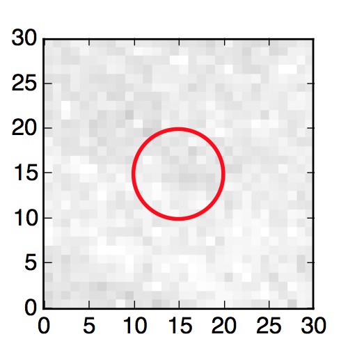 The red circle in the various panels is 1" in radius. The images are 6"x6".