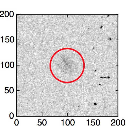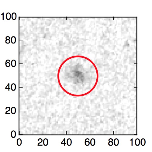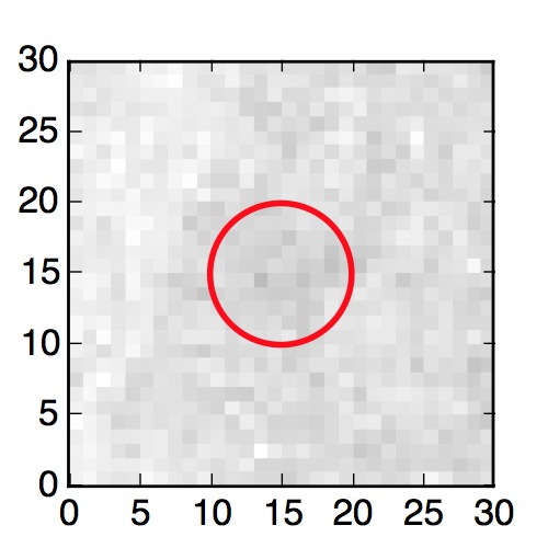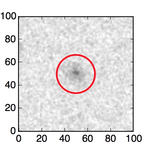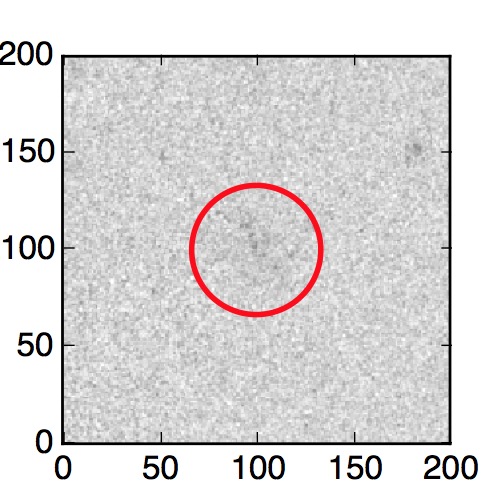 The red circle in the various panels is 1" in radius. The images are 6"x6".