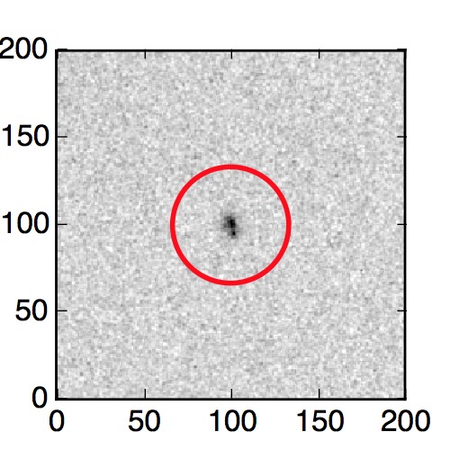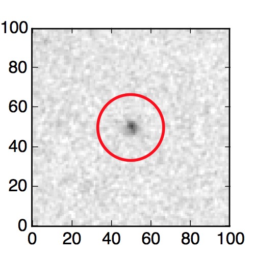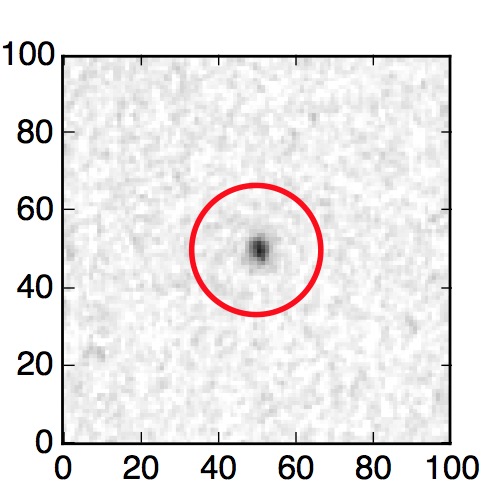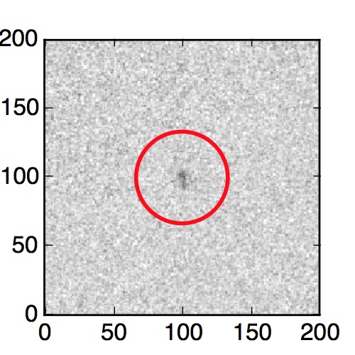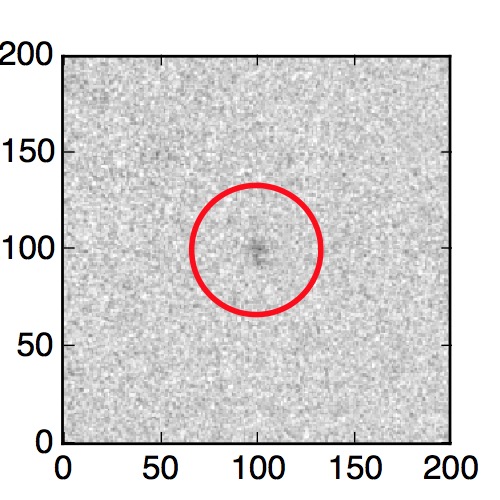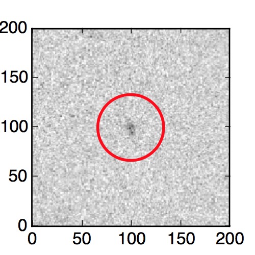 The red circle in the various panels is 1" in radius. The images are 6"x6".