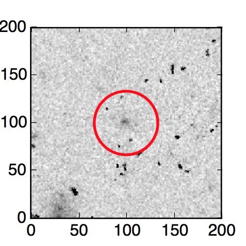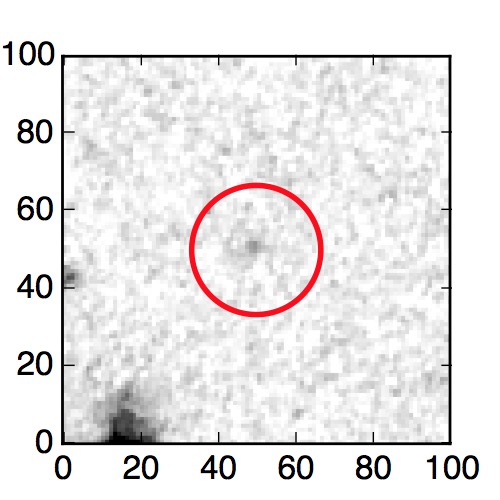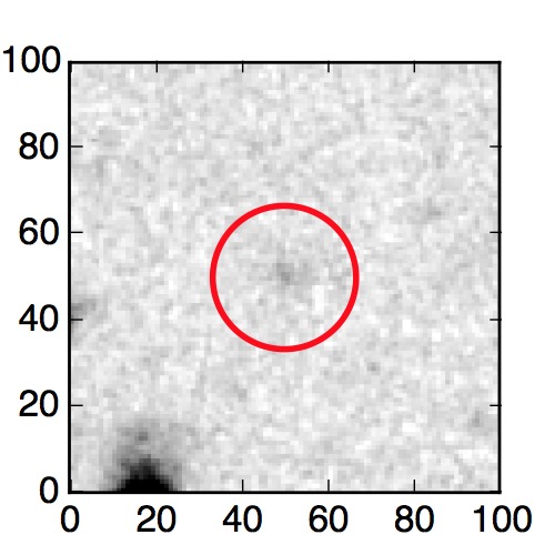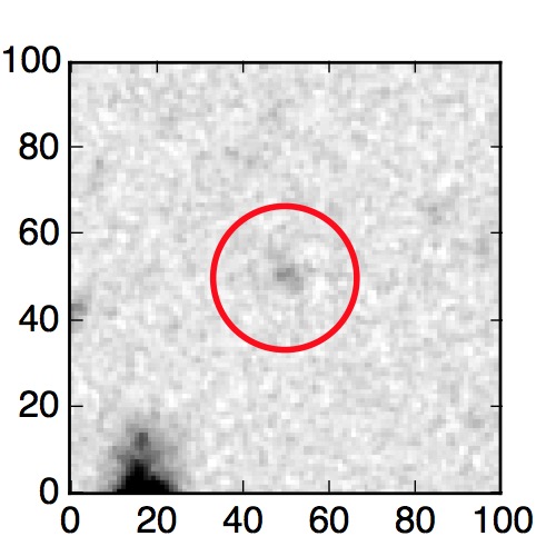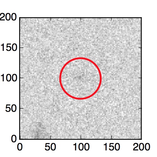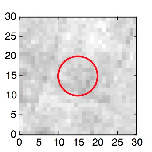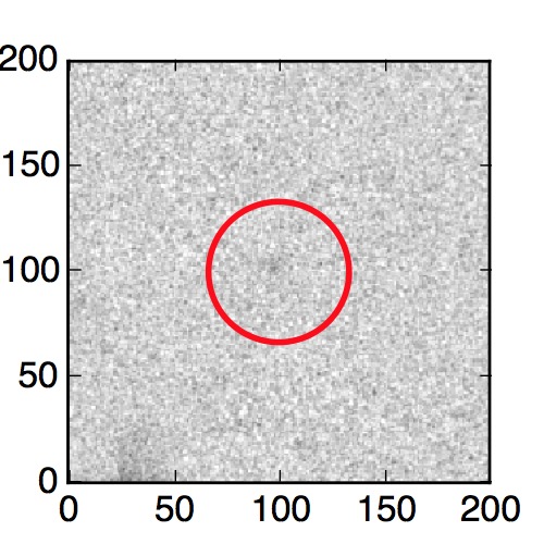 The red circle in the various panels is 1" in radius. The images are 6"x6".