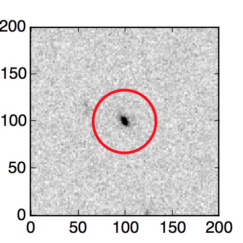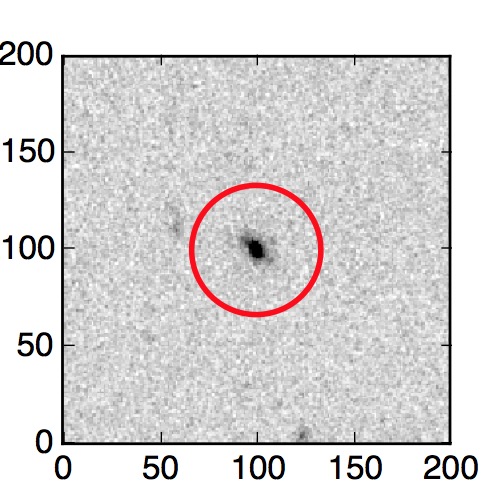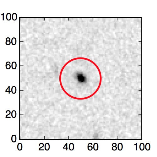 The red circle in the various panels is 1" in radius. The images are 6"x6".