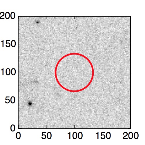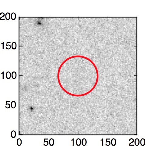 The red circle in the various panels is 1" in radius. The images are 6"x6".
