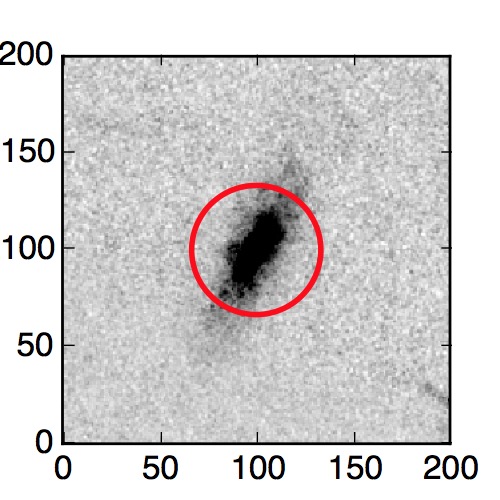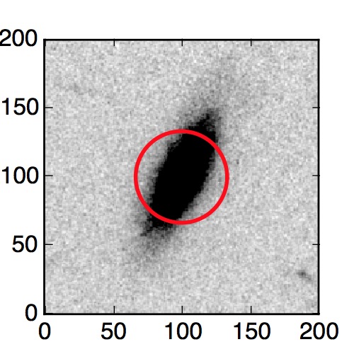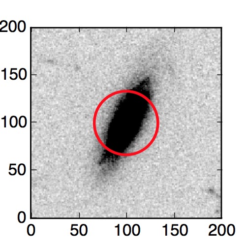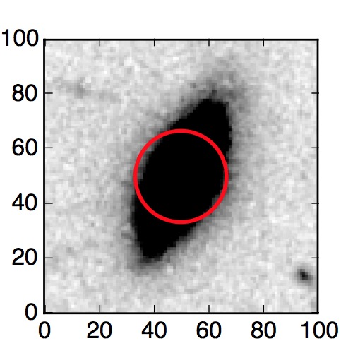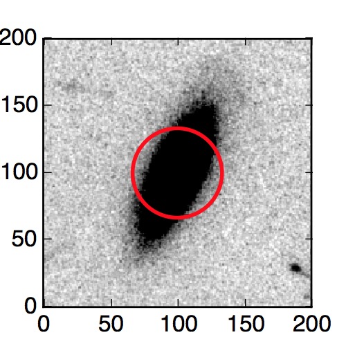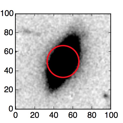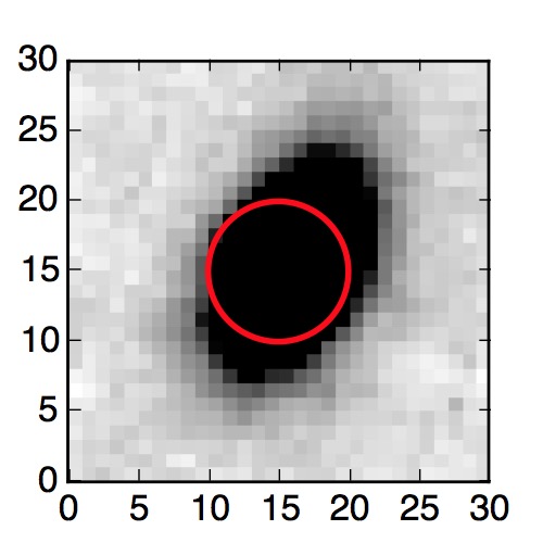 The red circle in the various panels is 1" in radius. The images are 6"x6".