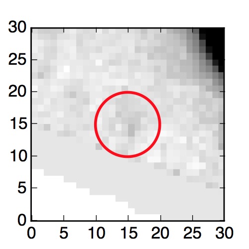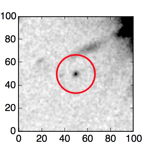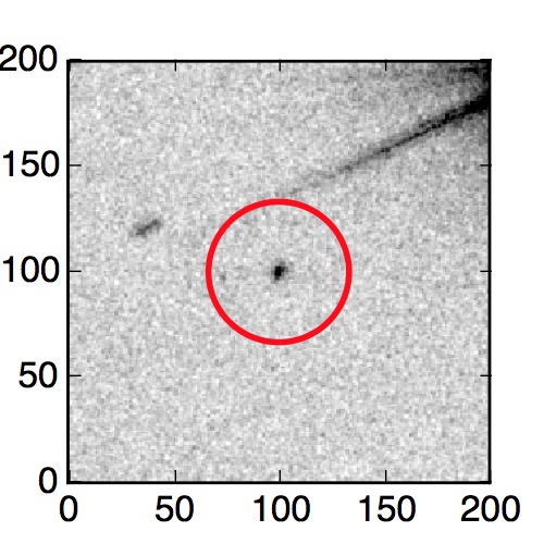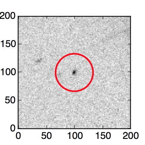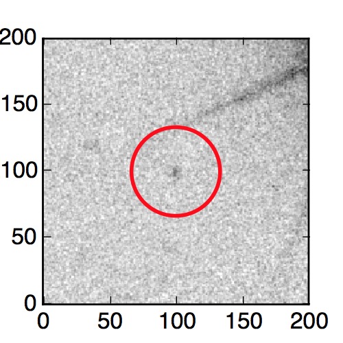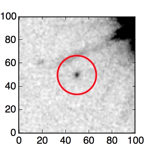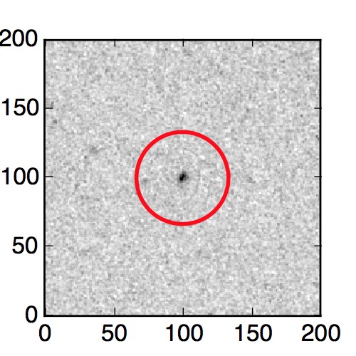 The red circle in the various panels is 1" in radius. The images are 6"x6".
