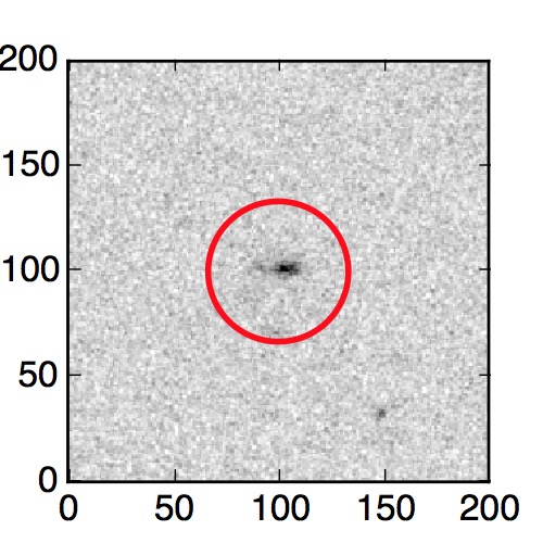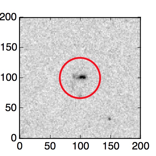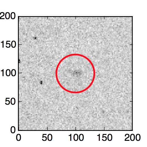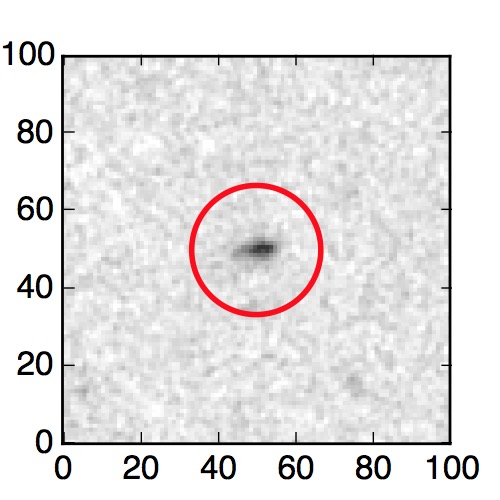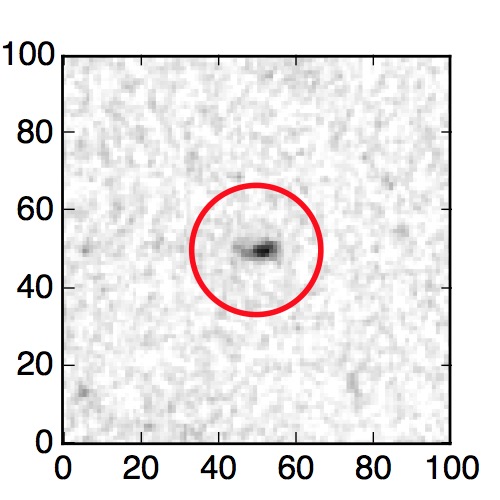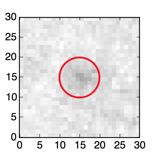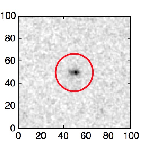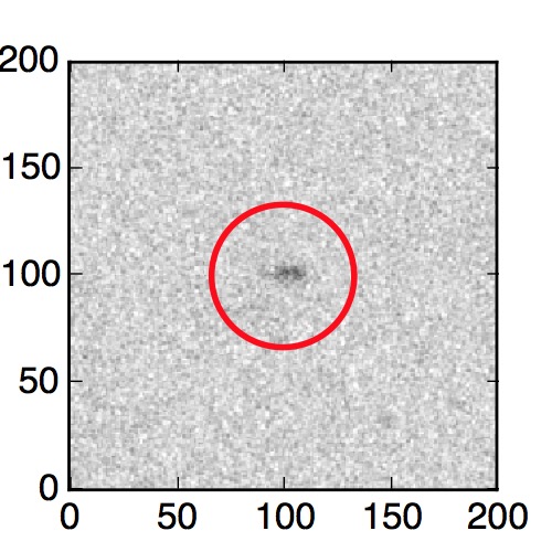 The red circle in the various panels is 1" in radius. The images are 6"x6".