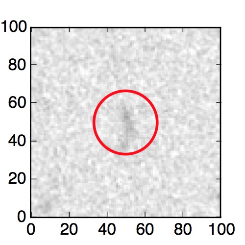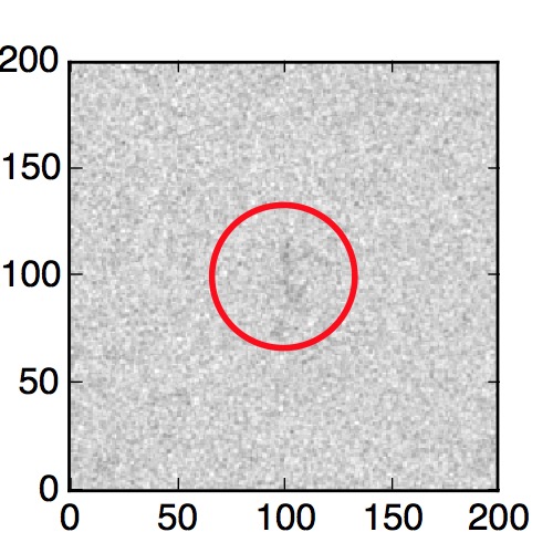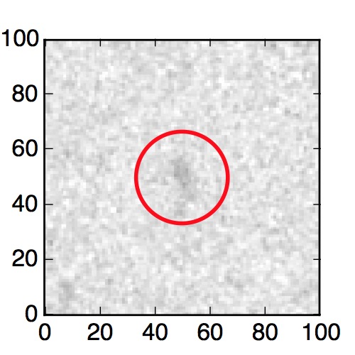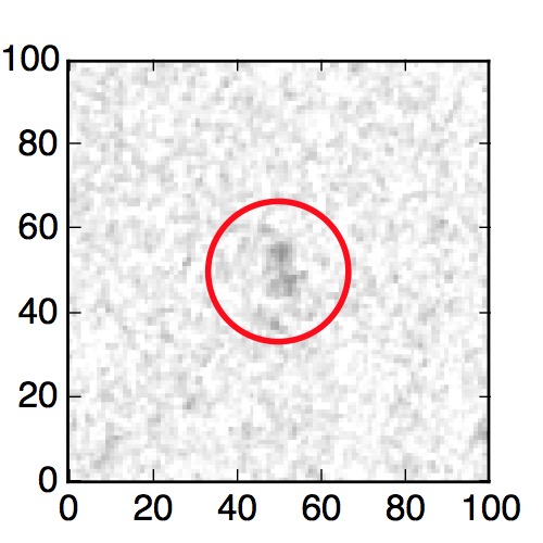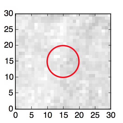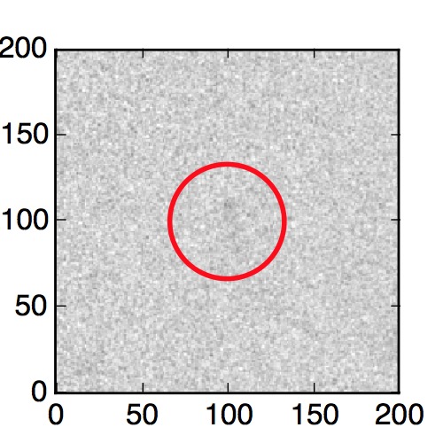 The red circle in the various panels is 1" in radius. The images are 6"x6".