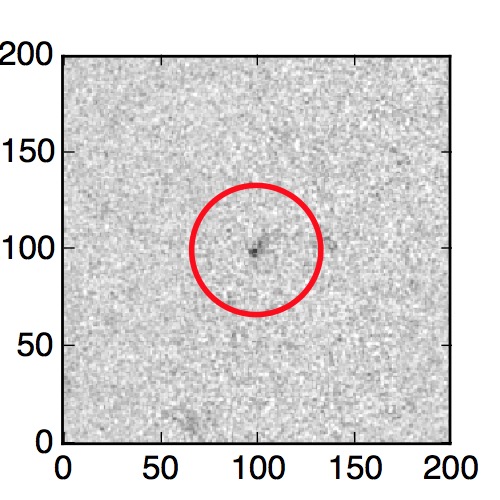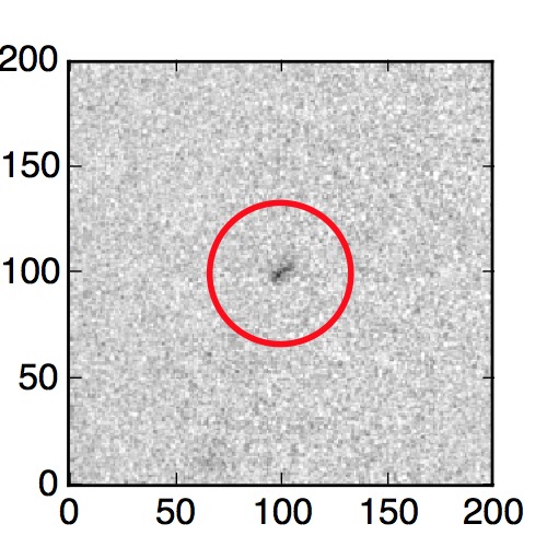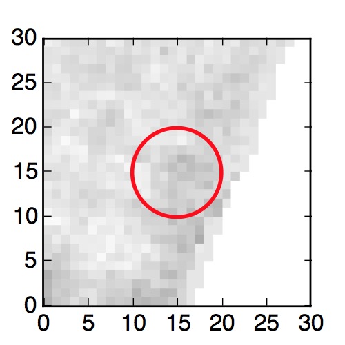 The red circle in the various panels is 1" in radius. The images are 6"x6".