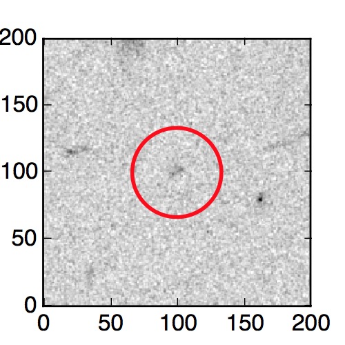The red circle in the various panels is 1" in radius. The images are 6"x6".