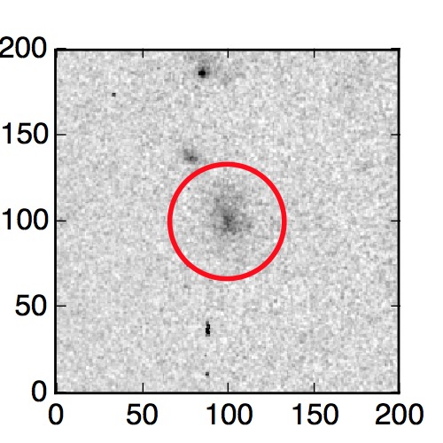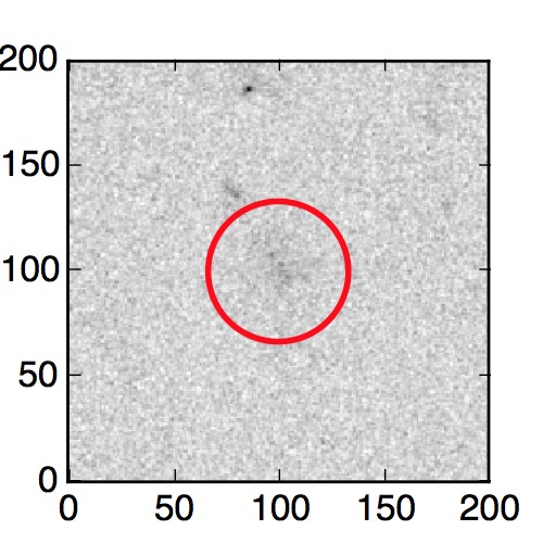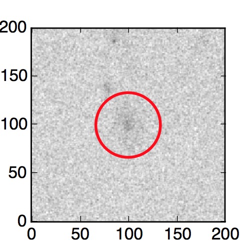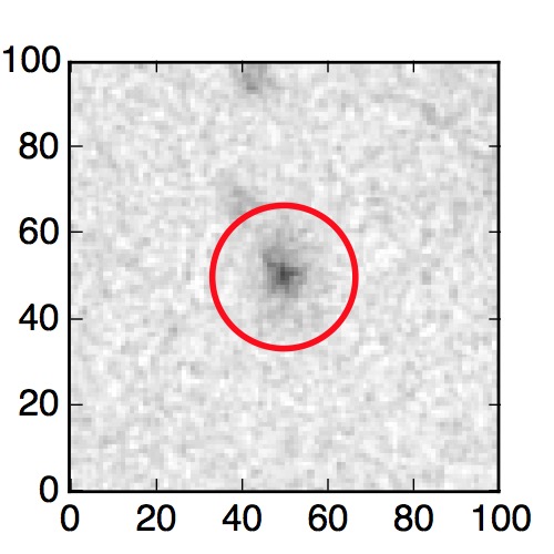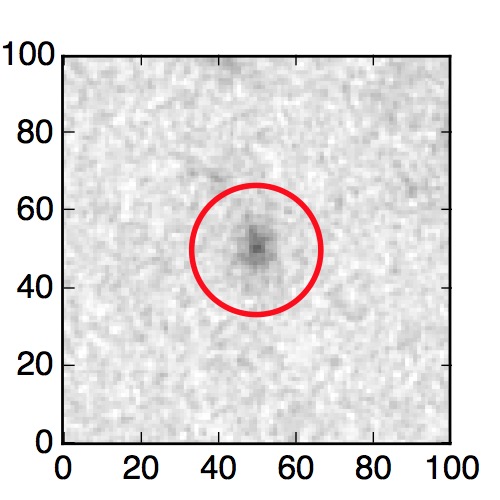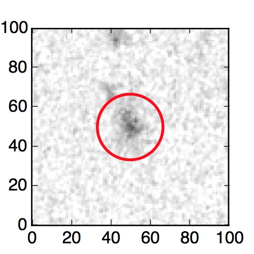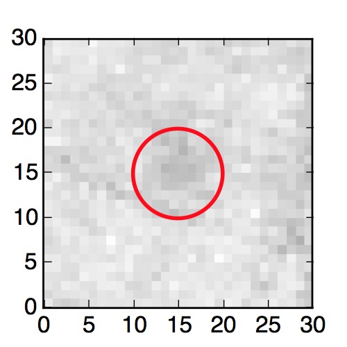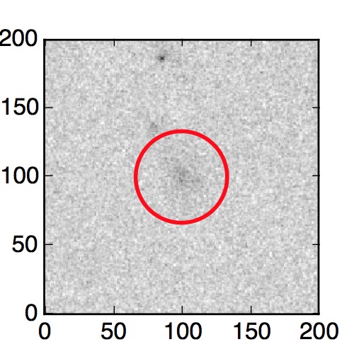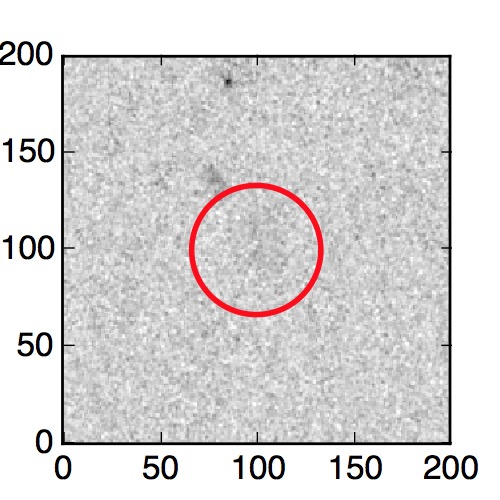 The red circle in the various panels is 1" in radius. The images are 6"x6".