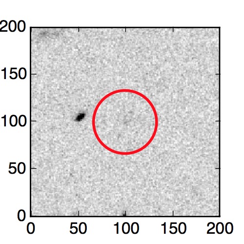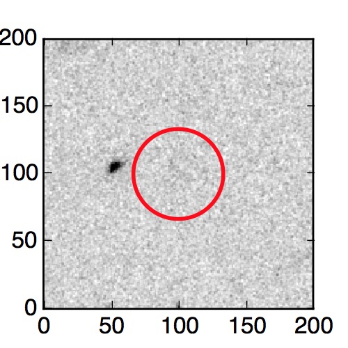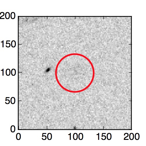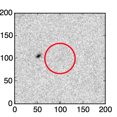 The red circle in the various panels is 1" in radius. The images are 6"x6".