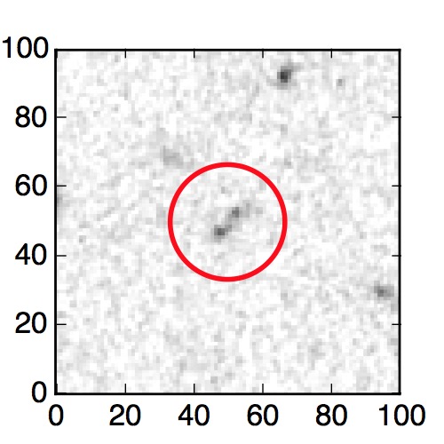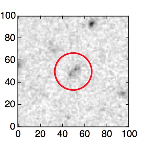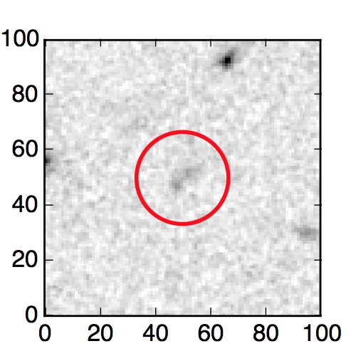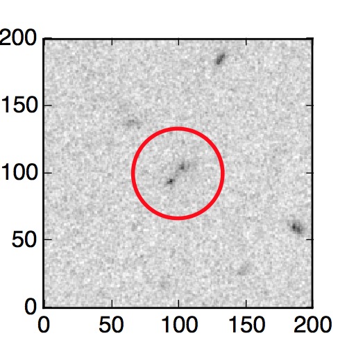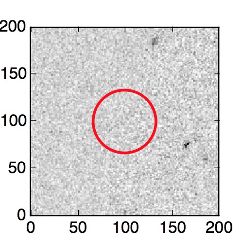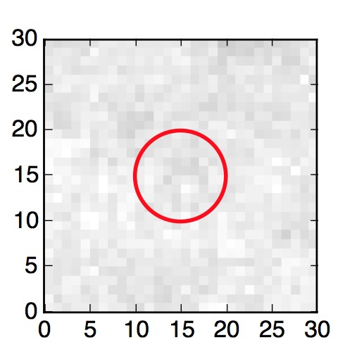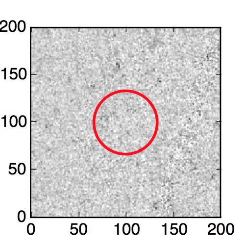 The red circle in the various panels is 1" in radius. The images are 6"x6".