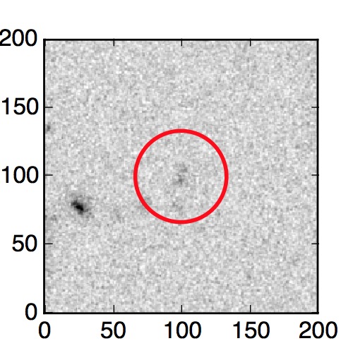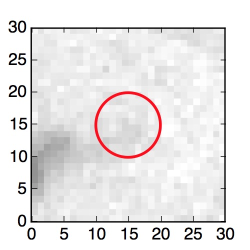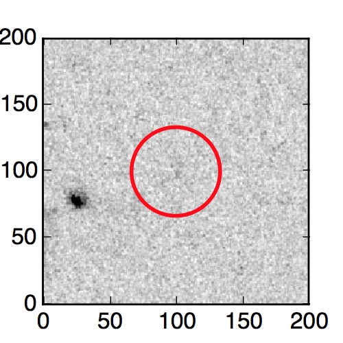 The red circle in the various panels is 1" in radius. The images are 6"x6".
