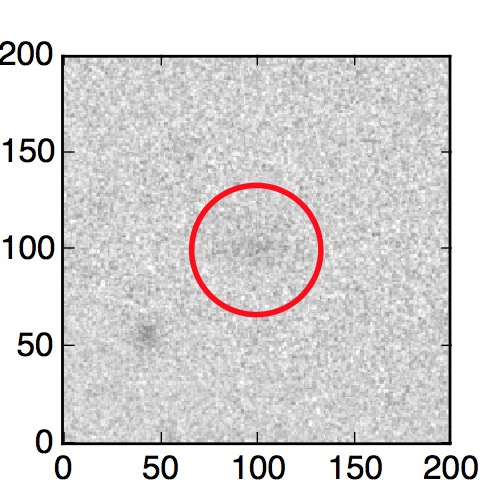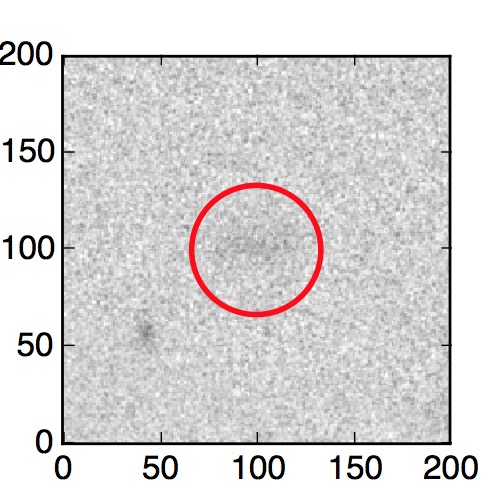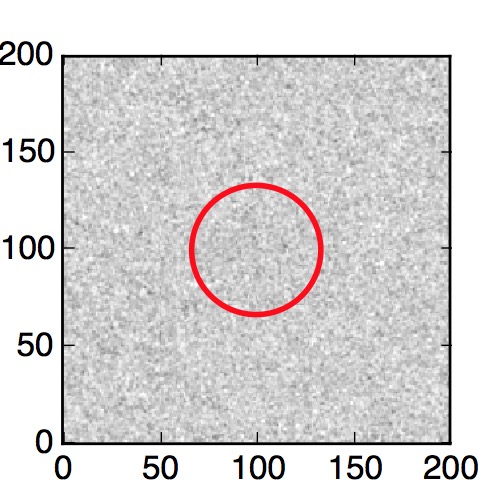 The red circle in the various panels is 1" in radius. The images are 6"x6".