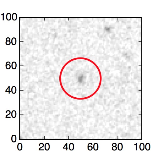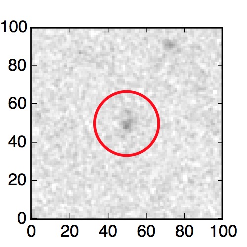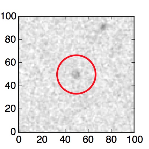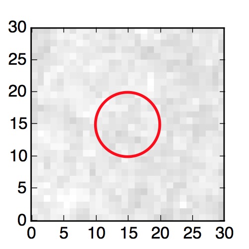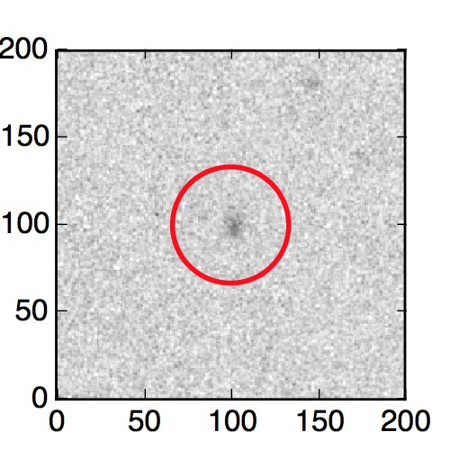 The red circle in the various panels is 1" in radius. The images are 6"x6".