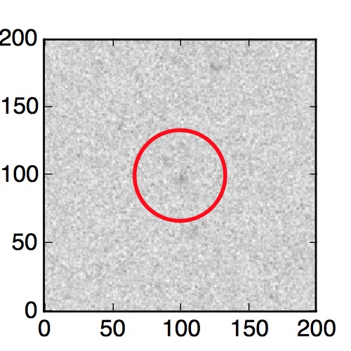The red circle in the various panels is 1" in radius. The images are 6"x6".