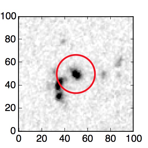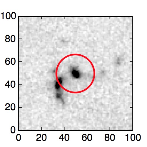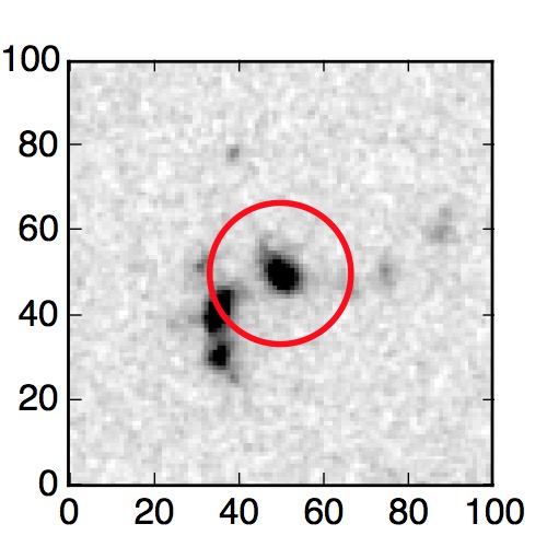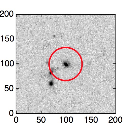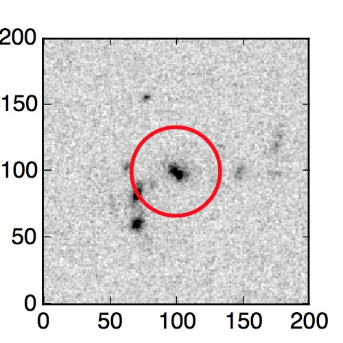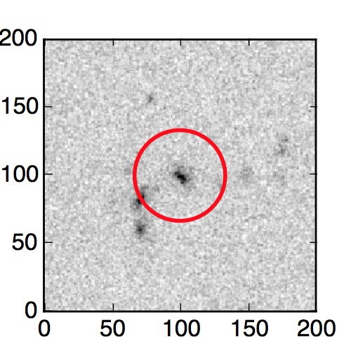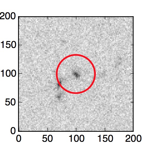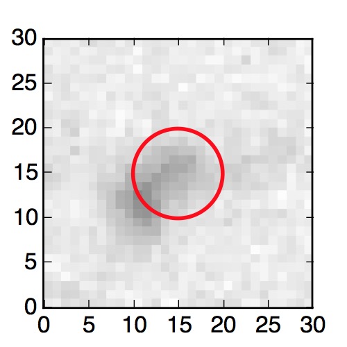 The red circle in the various panels is 1" in radius. The images are 6"x6".
