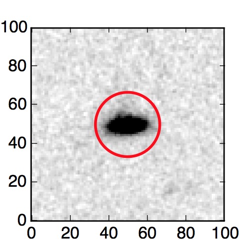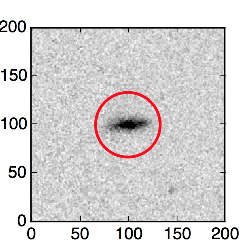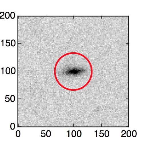 The red circle in the various panels is 1" in radius. The images are 6"x6".