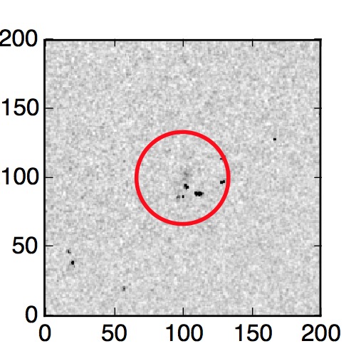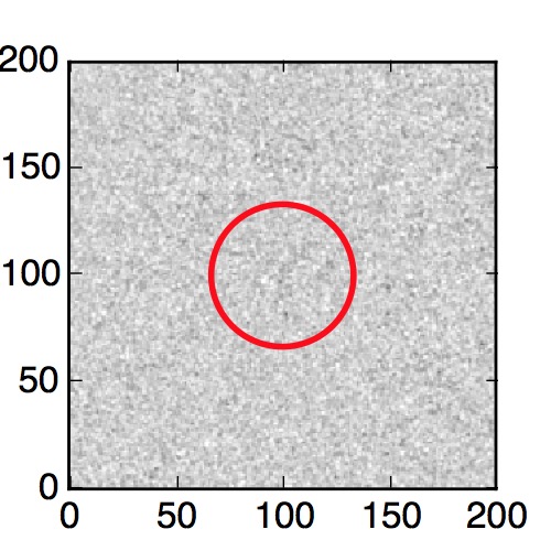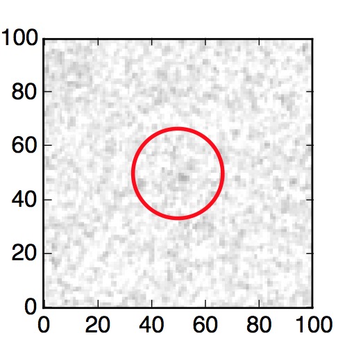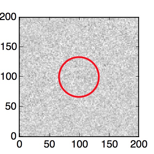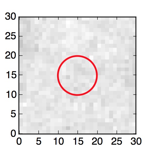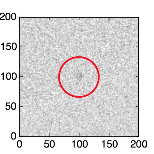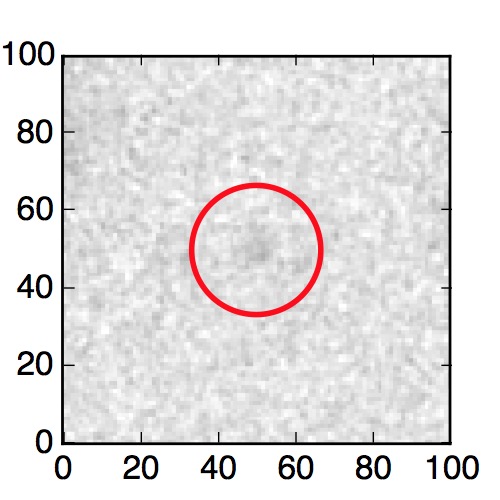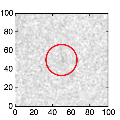 The red circle in the various panels is 1" in radius. The images are 6"x6".