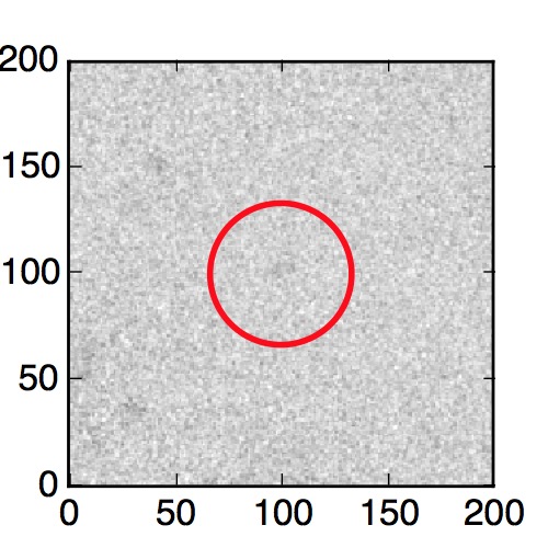 The red circle in the various panels is 1" in radius. The images are 6"x6".