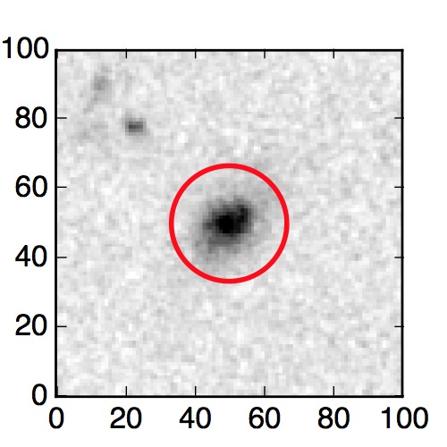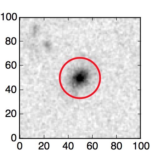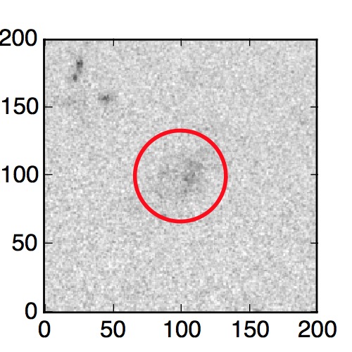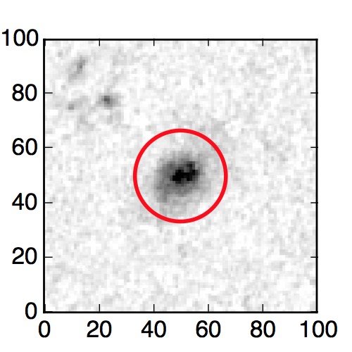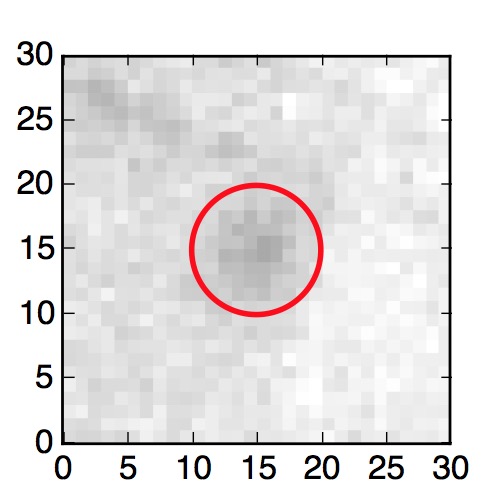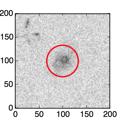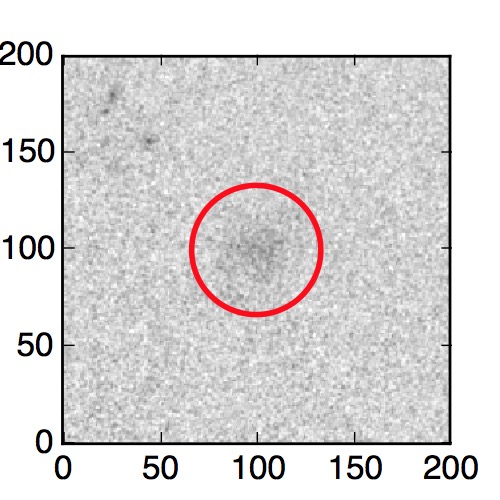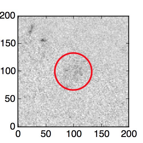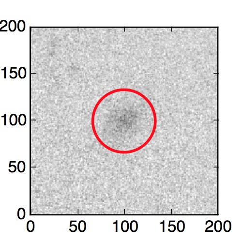 The red circle in the various panels is 1" in radius. The images are 6"x6".