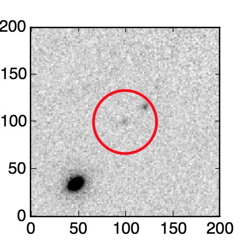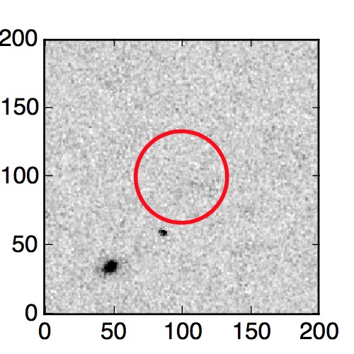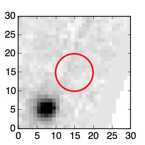 The red circle in the various panels is 1" in radius. The images are 6"x6".