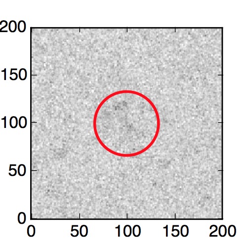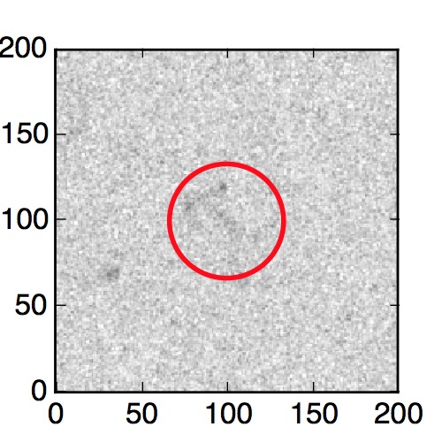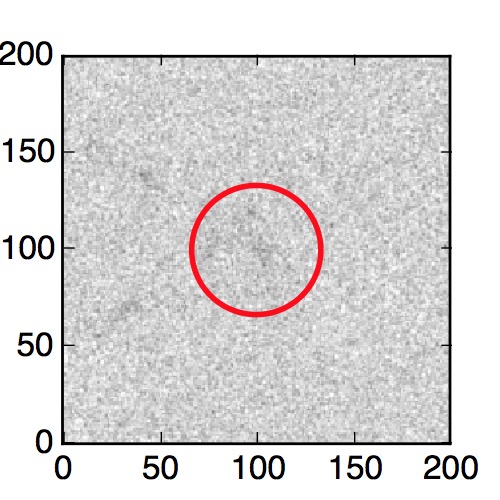 The red circle in the various panels is 1" in radius. The images are 6"x6".