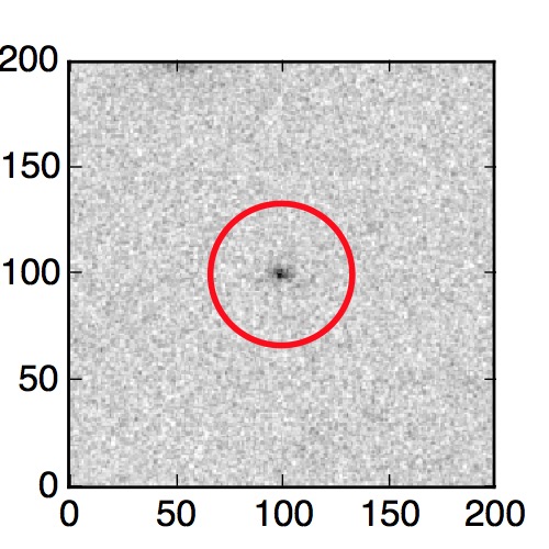 The red circle in the various panels is 1" in radius. The images are 6"x6".