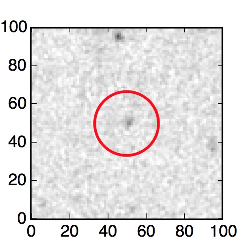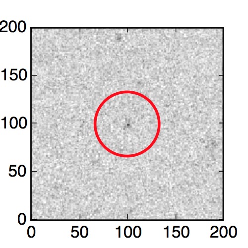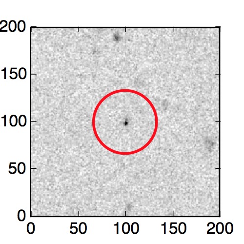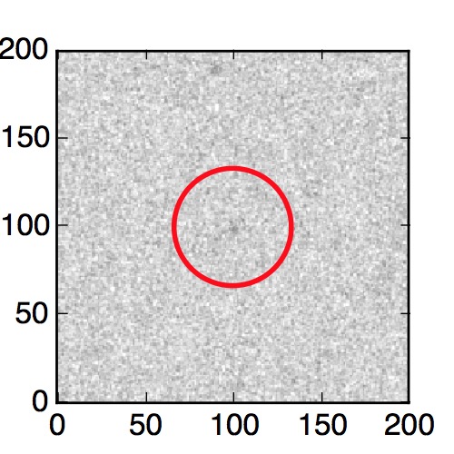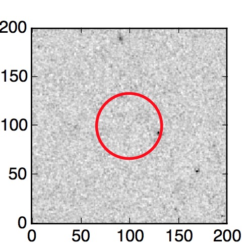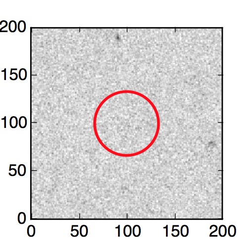 The red circle in the various panels is 1" in radius. The images are 6"x6".