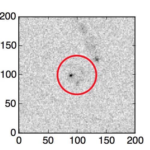 The red circle in the various panels is 1" in radius. The images are 6"x6".