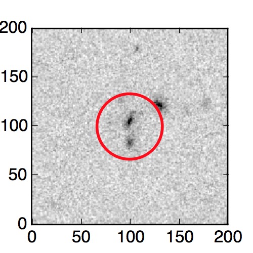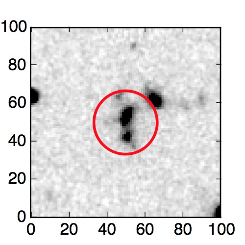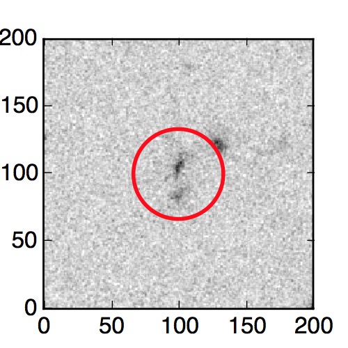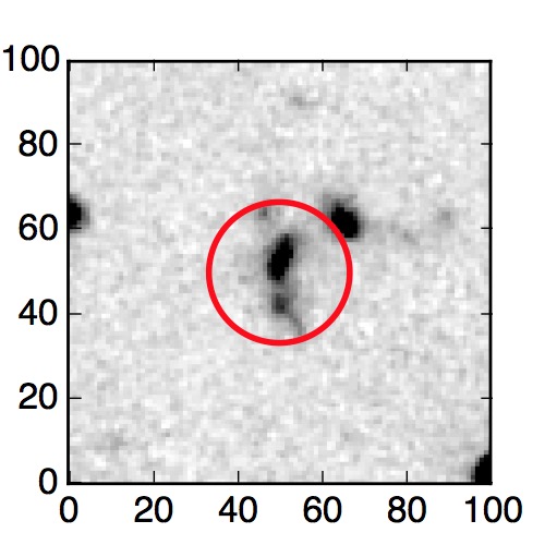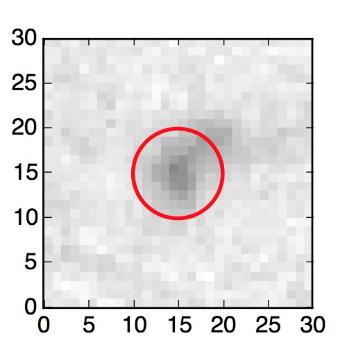 The red circle in the various panels is 1" in radius. The images are 6"x6".