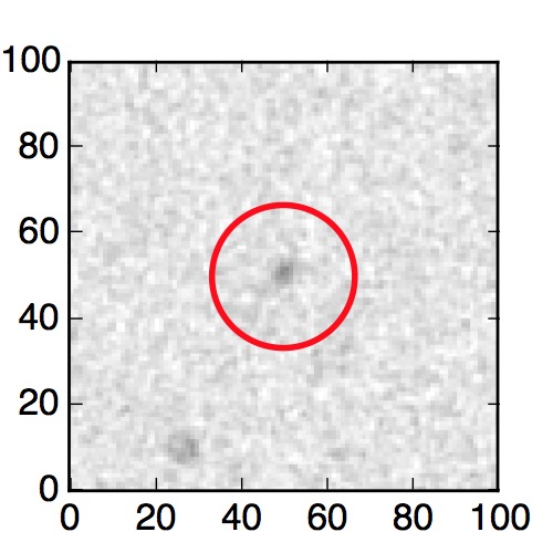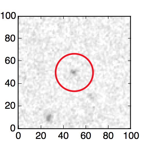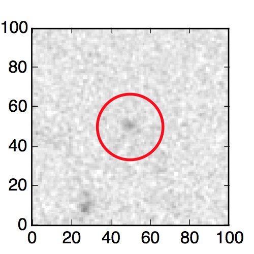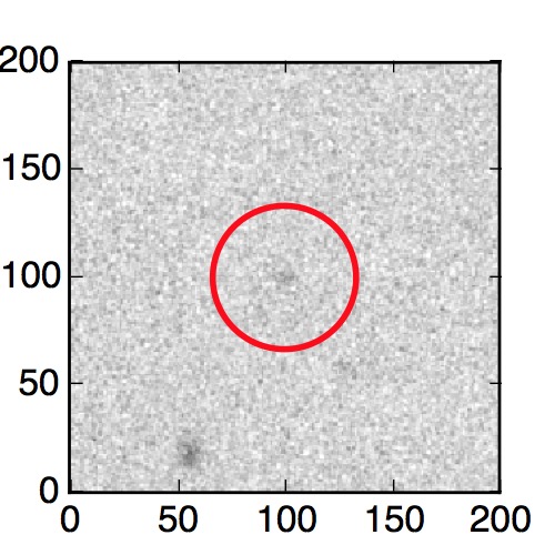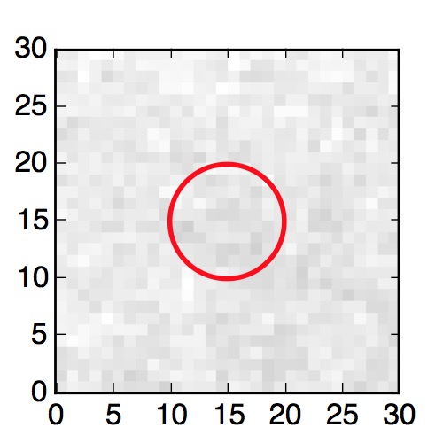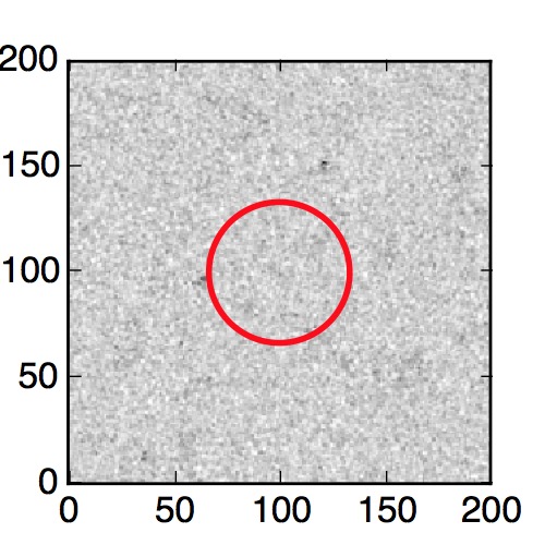 The red circle in the various panels is 1" in radius. The images are 6"x6".