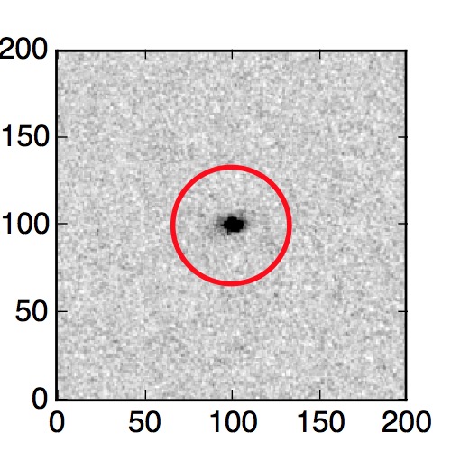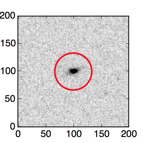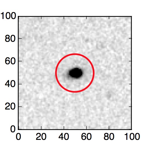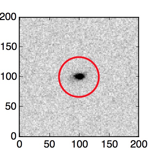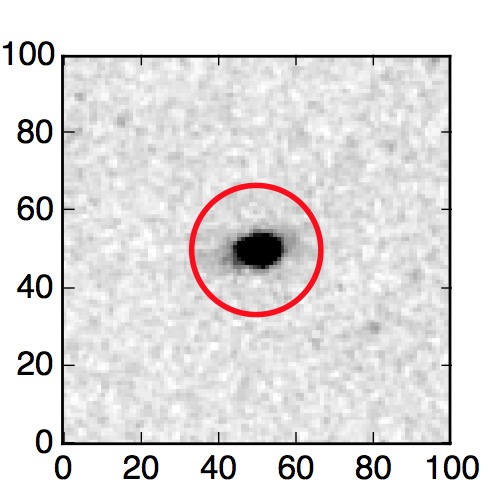 The red circle in the various panels is 1" in radius. The images are 6"x6".