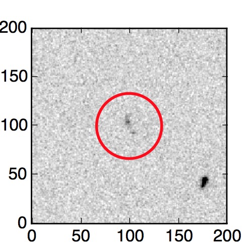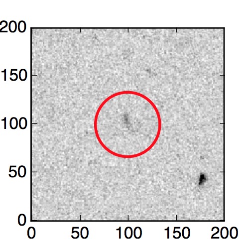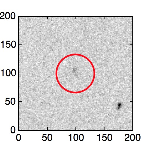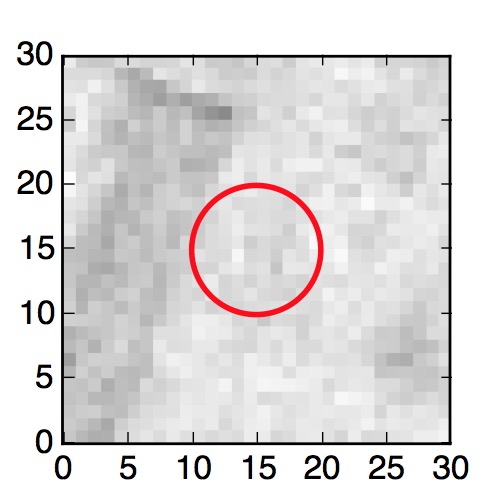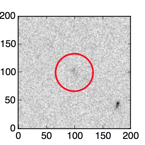 The red circle in the various panels is 1" in radius. The images are 6"x6".