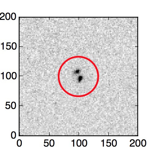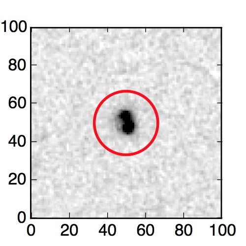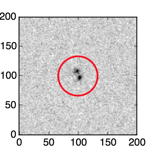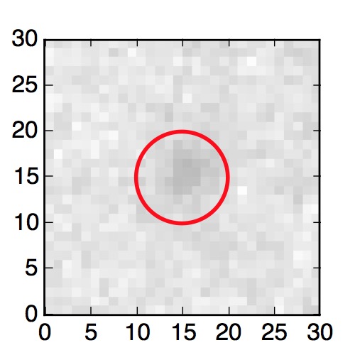 The red circle in the various panels is 1" in radius. The images are 6"x6".