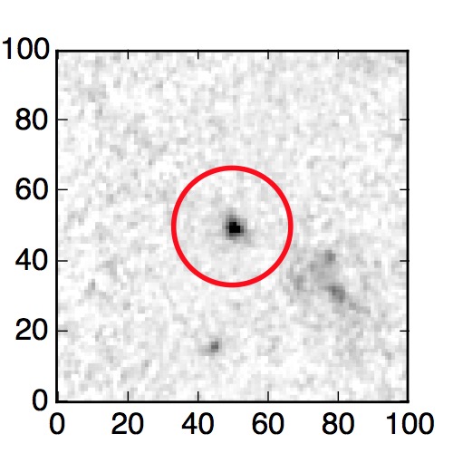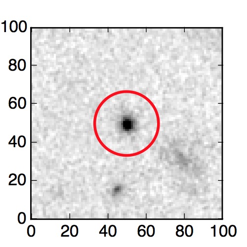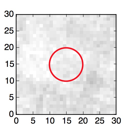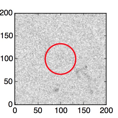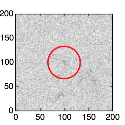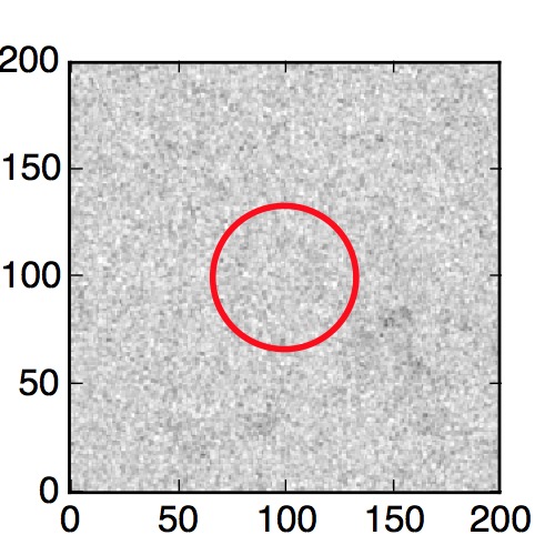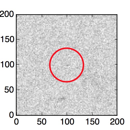 The red circle in the various panels is 1" in radius. The images are 6"x6".