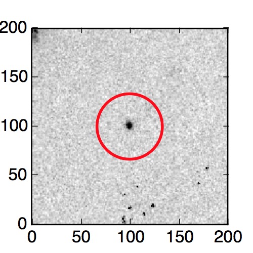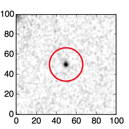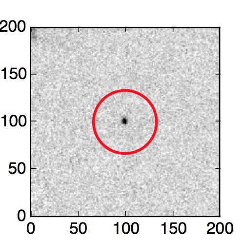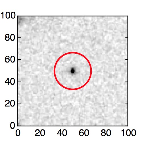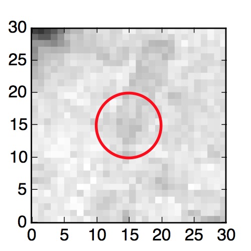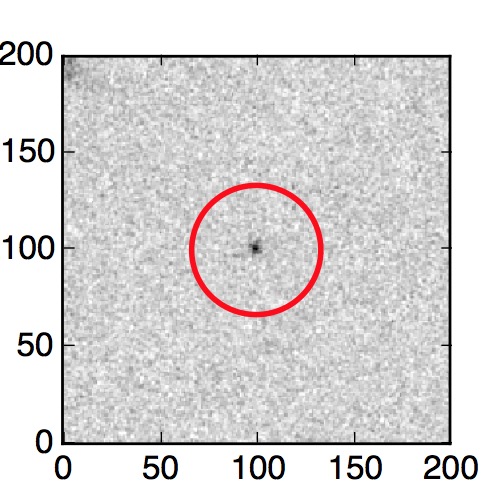The red circle in the various panels is 1" in radius. The images are 6"x6".