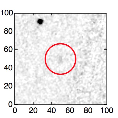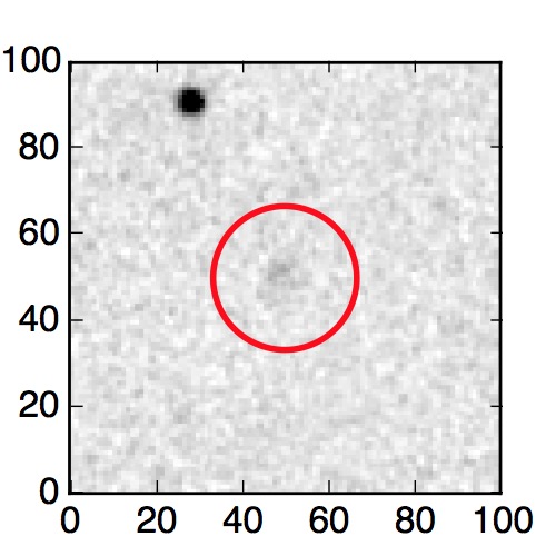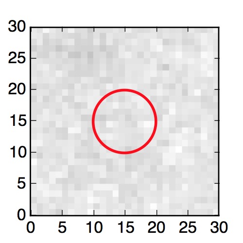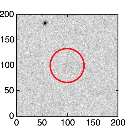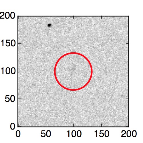 The red circle in the various panels is 1" in radius. The images are 6"x6".