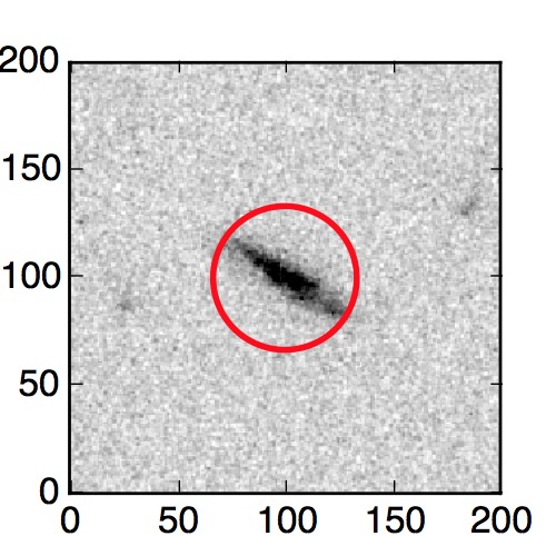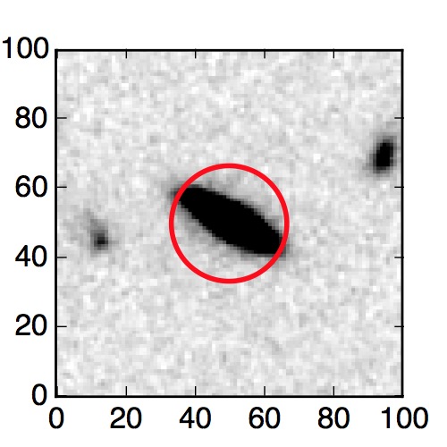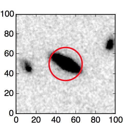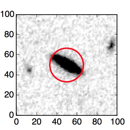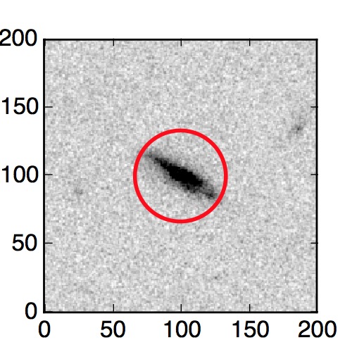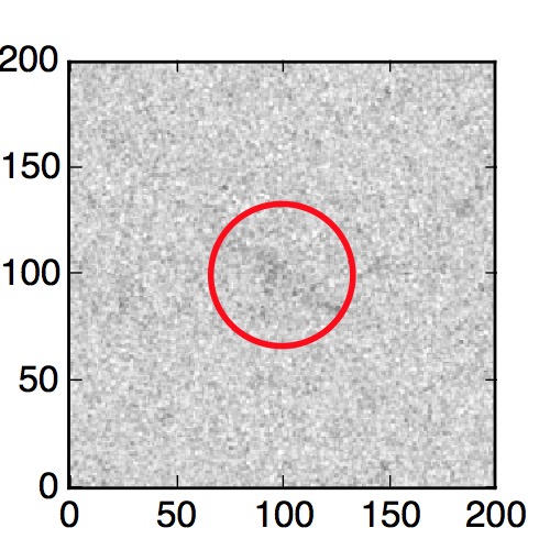 The red circle in the various panels is 1" in radius. The images are 6"x6".