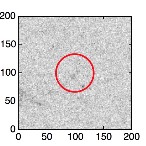 The red circle in the various panels is 1" in radius. The images are 6"x6".