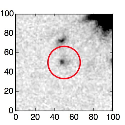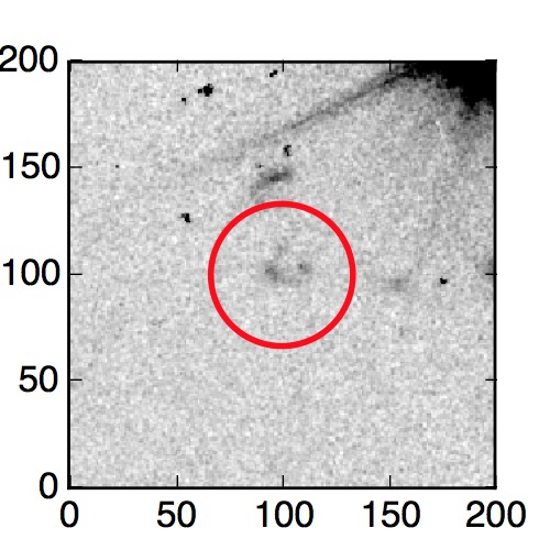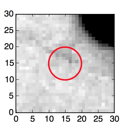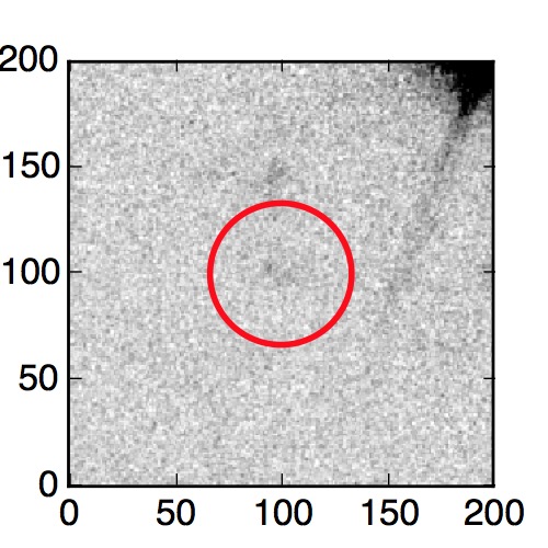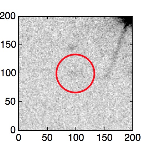 The red circle in the various panels is 1" in radius. The images are 6"x6".