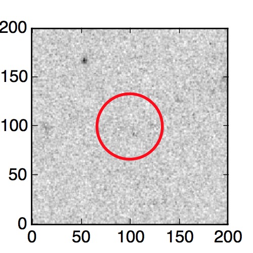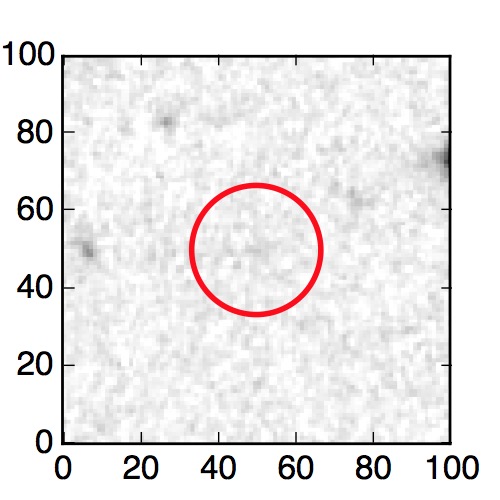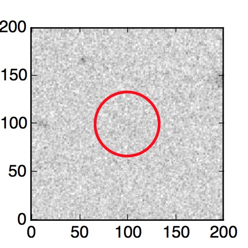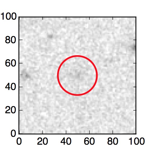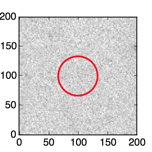 The red circle in the various panels is 1" in radius. The images are 6"x6".