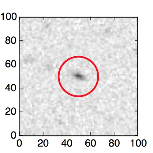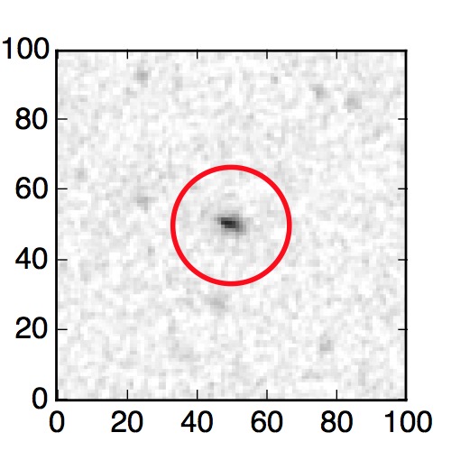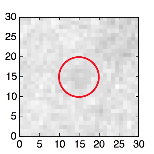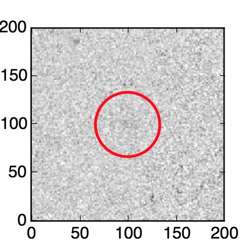 The red circle in the various panels is 1" in radius. The images are 6"x6".