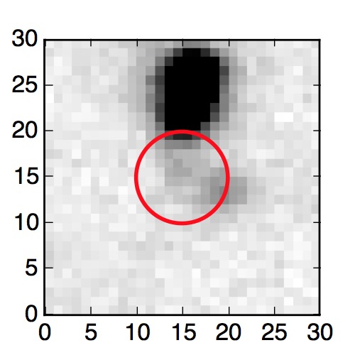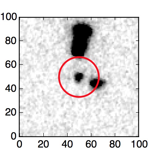 The red circle in the various panels is 1" in radius. The images are 6"x6".