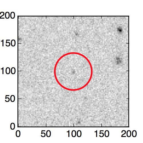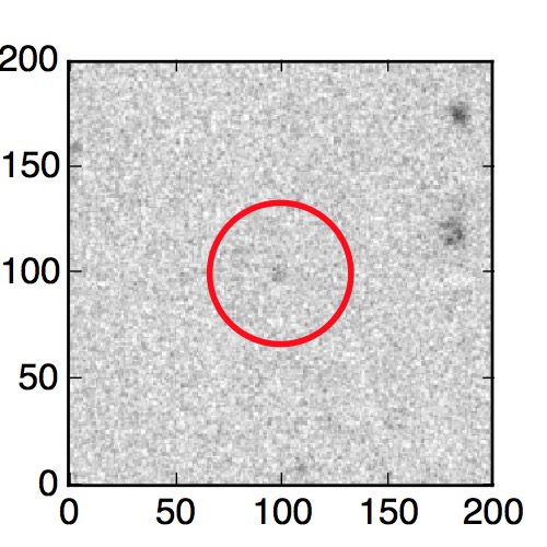 The red circle in the various panels is 1" in radius. The images are 6"x6".