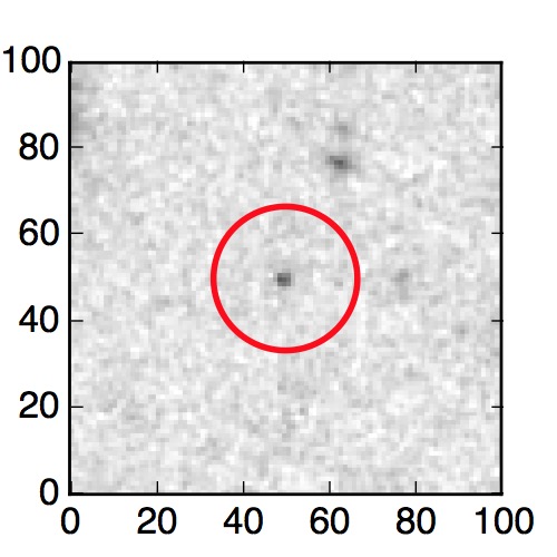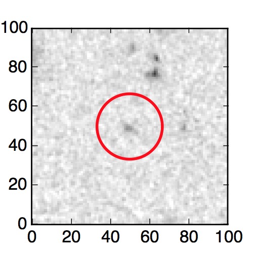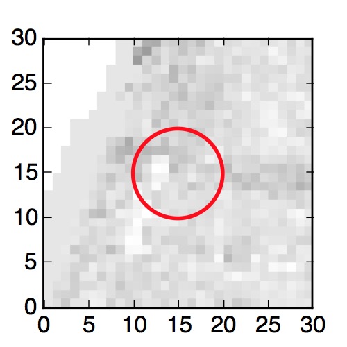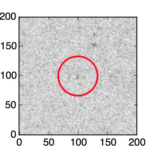 The red circle in the various panels is 1" in radius. The images are 6"x6".
