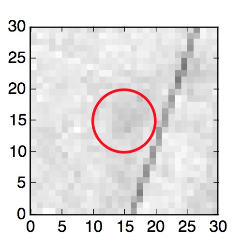The red circle in the various panels is 1" in radius. The images are 6"x6".