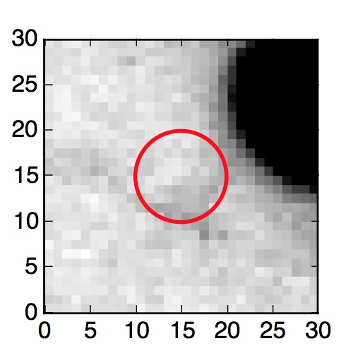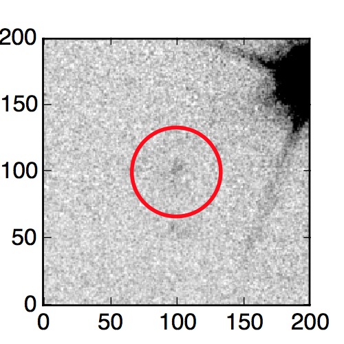 The red circle in the various panels is 1" in radius. The images are 6"x6".