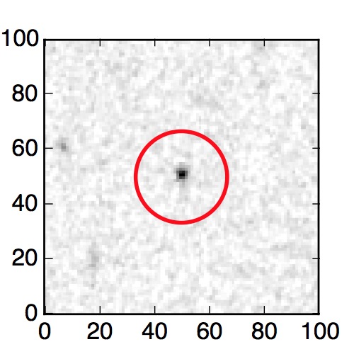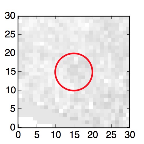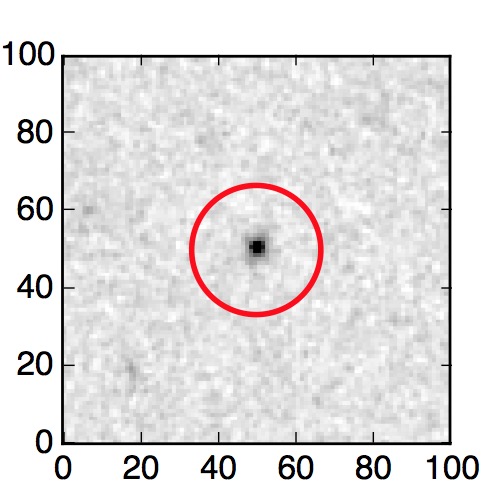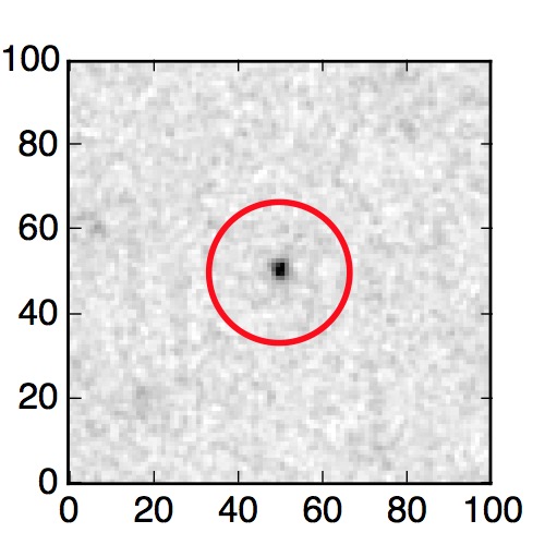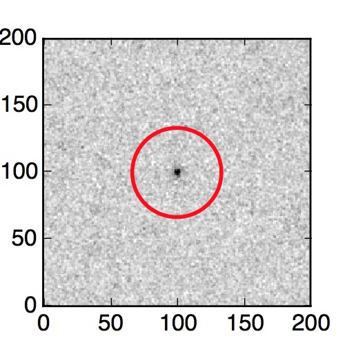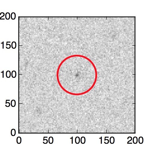 The red circle in the various panels is 1" in radius. The images are 6"x6".