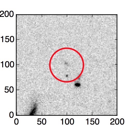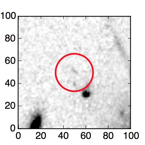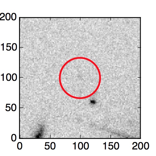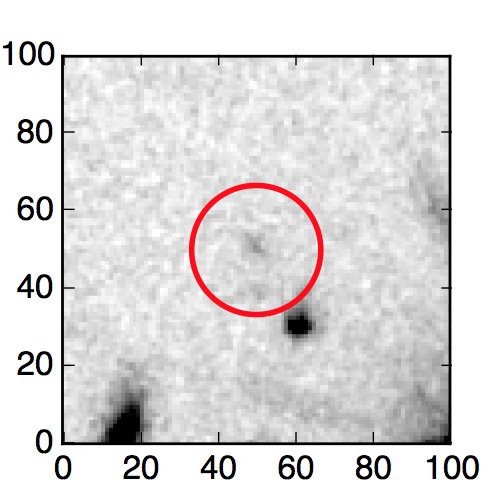 The red circle in the various panels is 1" in radius. The images are 6"x6".